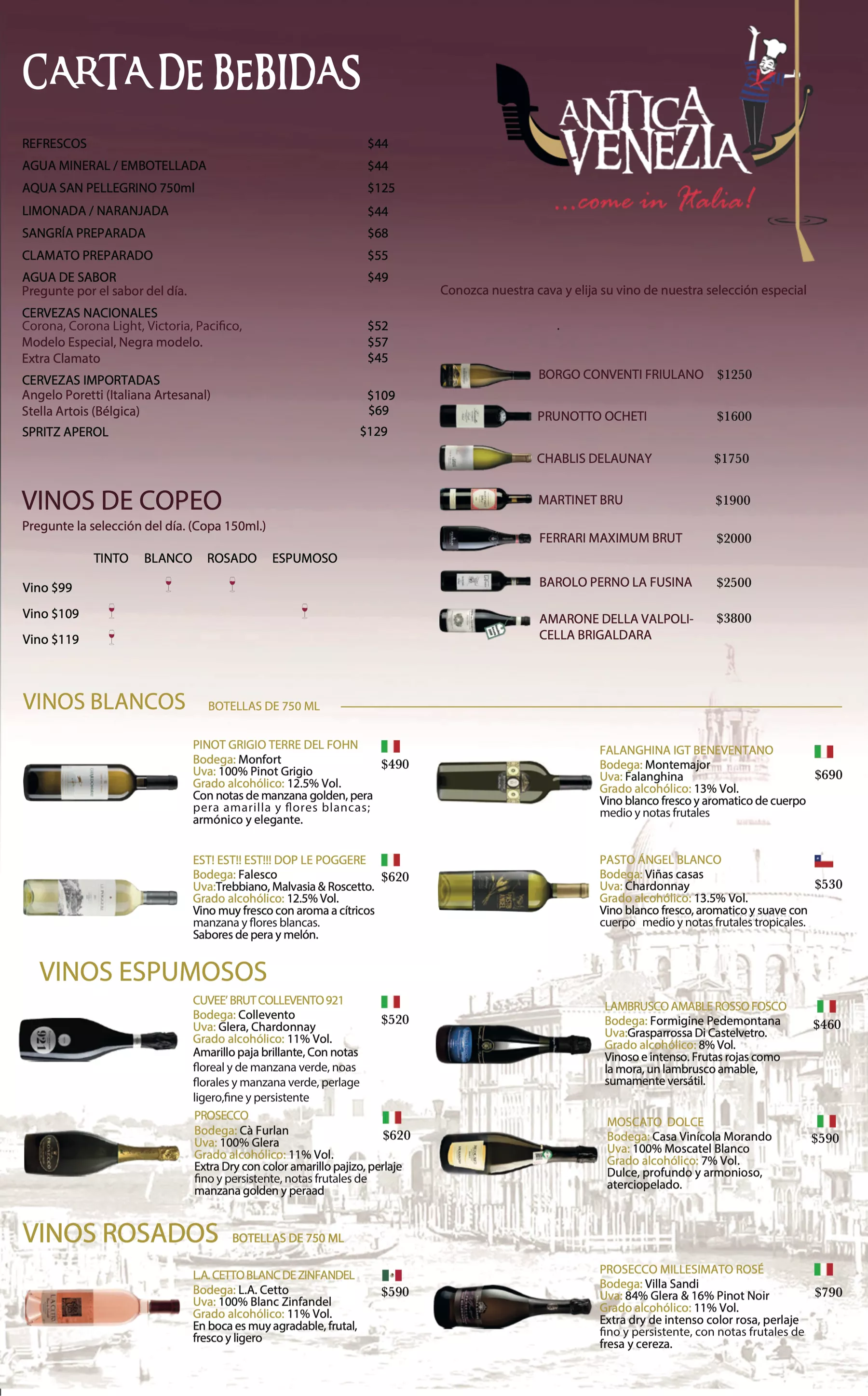 Antica Venezia nace de la tradición y el amor por la genuina gastronomía italiana para ofrecer a sus clientes platillos con historia y origen: pizzas y pastas elaboradas artesanalmente por italianos que llevan una estricta selección de ingredientes naturales y saludables para lograr ricos y auténticos sabores en una atmósfera única.