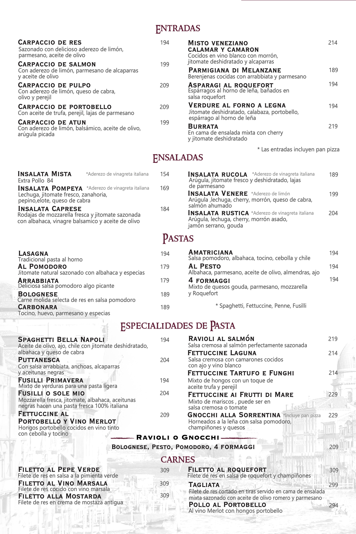 Antica Venezia nace de la tradición y el amor por la genuina gastronomía italiana para ofrecer a sus clientes platillos con historia y origen: pizzas y pastas elaboradas artesanalmente por italianos que llevan una estricta selección de ingredientes naturales y saludables para lograr ricos y auténticos sabores en una atmósfera única.